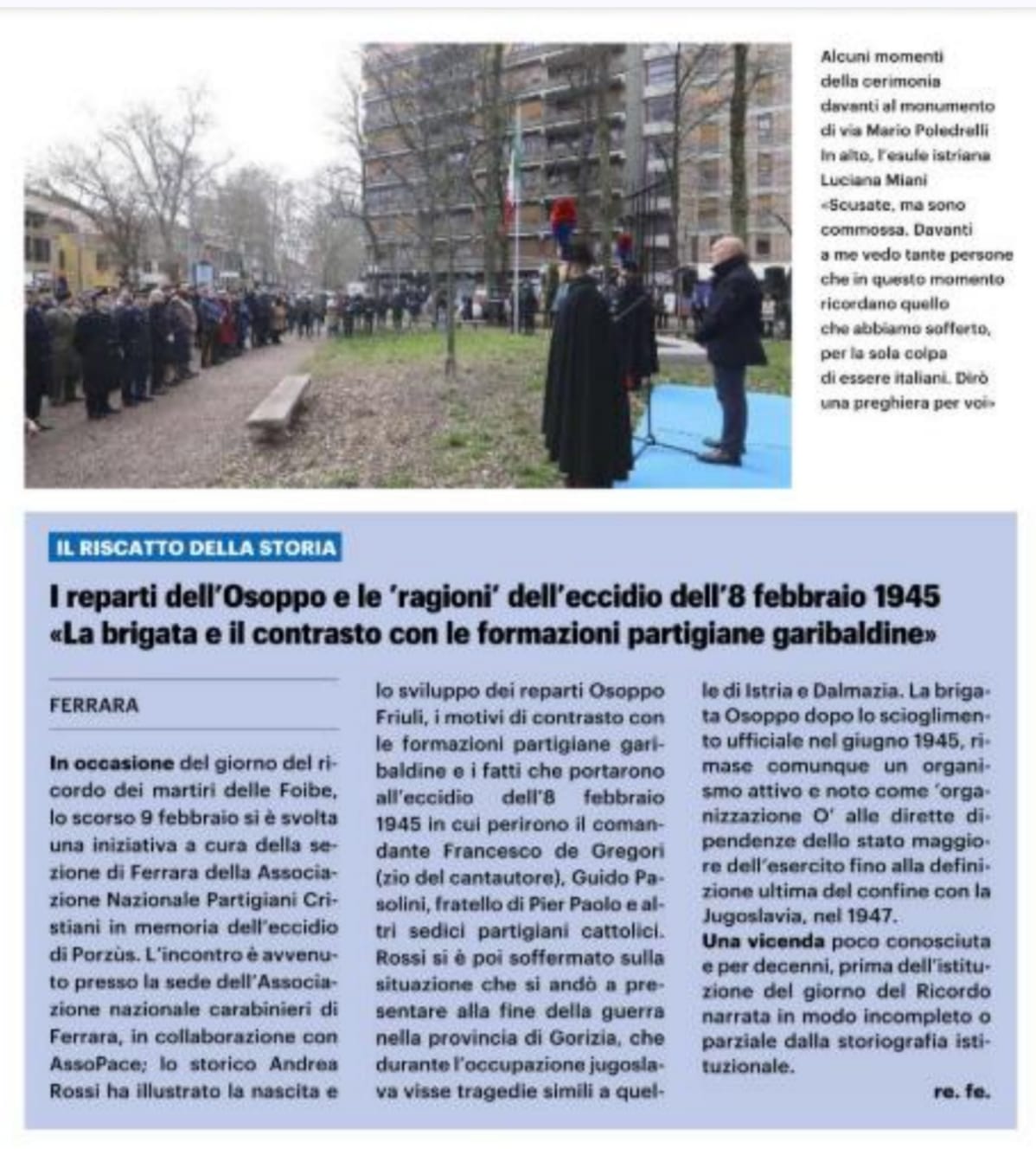 Le riflessioni della Vicepresidente Nazionale, Silvia Costa: “Oggi, 10 febbraio “Il Giorno del ricordo” dell’esodo di 300 mila italiani dall’Istria, dalla Dalmazia e dalla Venezia Giulia e delle decine di migliaia di vittime delle foibe. Una tragedia che troppo a lungo e’ stata negata, rimossa e non raccontata. “Le vere foibe sono l’oblio”, ha detto Toni Concina intervenendo alla Camera in rappresentanza delle Associazione giuliano dalmate. Ha invitato a lavorare per elaborare tragedie e lutti intensificando il dialogo, le relazioni culturali, le nuove comunità italiane che, come a Zara, stanno ricostituendo i giovani nel quadro della comune appartenenza europea. Raccogliendo il forte messaggio venuto da Gorizia e Nova Goriza che insieme sono state proclamate Capitale europea delle cultura. E ricordando il gesto storico del Presidente Mattarella a Trieste, nel 2020, con quella foto struggente di lui, mano nella mano con il presidente sloveno Pahor davanti alla foiba di Basovizza, “Se non possono sempre essere memorie condivise, possono essere memorie reciprocamente riconosciute e rispettate”, ha concluso Concina. Per contribuire a questa memoria storica, segnalo che il 19 febbraio con l’Istituto Parri e il Cnr presenteremo l’Atlante interattivo dei 109 campi profughi dei cittadini giuliano dalmati, il primo repertorio completo realizzato finora, coordinato dagli storici Enrico Miletto e Costantino Di Sante (https://www.rainews.it/tgr/piemonte/video/2026/02/le-foibe-e-quei-campi-profughi-dimenticati-ora-ce-un-atlante-online-7e6c3780-3091-4e23-a952-4dfe9a67f7a2.html?wt_mc=2.www.wzp.rainews)”.