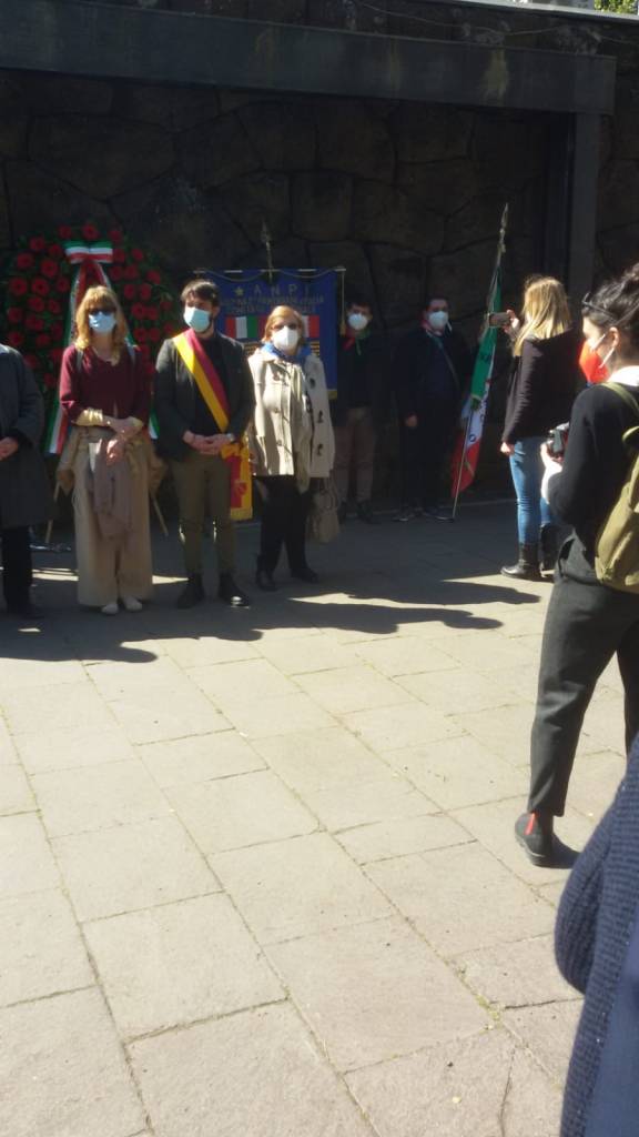 Le associazioni della Casa della Memoria (ANPI, ANPPIA, ANED, FIAP, IRSIFAR, BOSIO, ANEI e ANPC) hanno voluto testimoniare il loro ricordo ai Martiri lasciando una corona di fiori davanti al cancello del Sacrario.