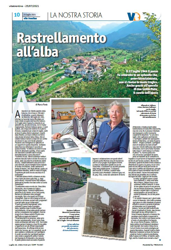 Un parroco che, come tanti altri, ha salvato molte vite: su “Vita Trentina” la storia di Don Guido Poda durante il rastrellamento di Albaredo del 22 luglio 1944. Una bella storia di resistenti senza fucile vicino Rovereto.