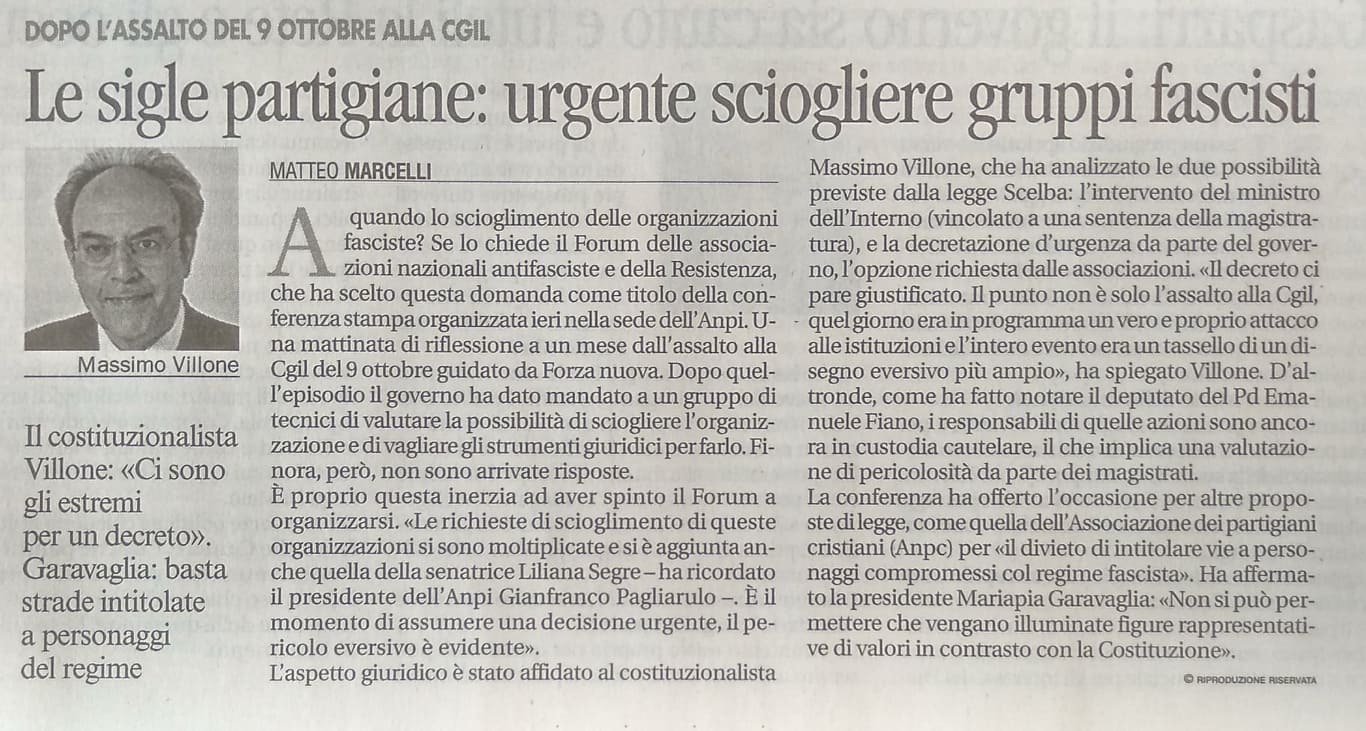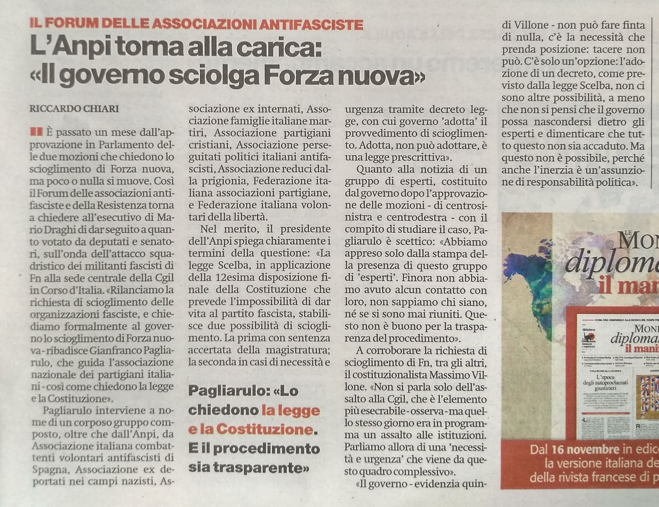 Condividiamo con tutti voi la bella newsletter che Mario Calabresi ha dedicato all’incredibile intimidazione e aggressione subita in provincia di Varese il 12/11 scorso dalla scrittrice e ricercatrice di storia contemporanea Chiara Colombini alla presentazione del suo libro “Anche i partigiani però …”. Questo mette in luce un pericoloso ritorno di movimenti inneggianti al fascismo e al disprezzo per i valori della Resistenza, di cui tutti dobbiamo essere avvertiti e vigili.
