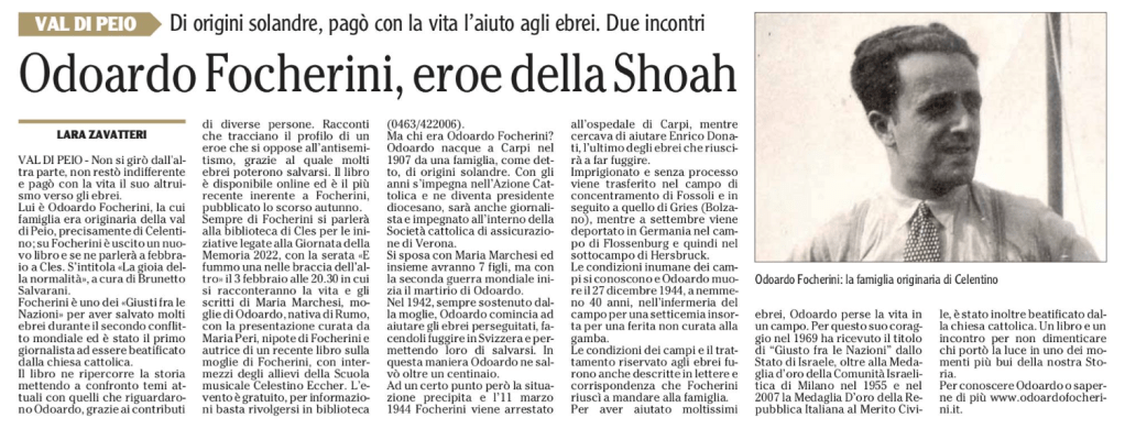 Ci sono persone sopravvissute che hanno accettato di rinnovare il loro indicibile dolore per raccontare le loro esperienze vissute, comunque difficile da condividere, perché fortunatamente da noi non subito. Tra i testimoni Liliana Segre, con la sua visibilità e generosità, sta offrendo una testimonianza luminosa. Una volta di più dobbiamo ringraziare il Presidente Mattarella che l’ha nominata senatrice a vita, esempio per tutti i cittadini.