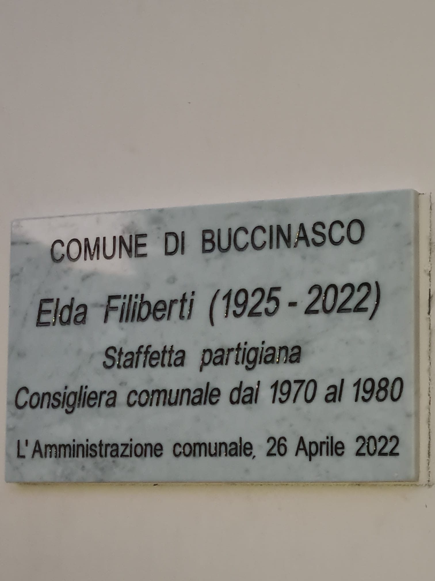 Ieri sera, prima dell’inizio del Consiglio comunale nel Comune di Buccinasco è stata svelata una targa intitolando la Sala Consiliare a Elda Filiberti, staffetta Partigiana cattolica, e consigliera comunale negli anni 70, recentemente scomparsa a 96 anni.