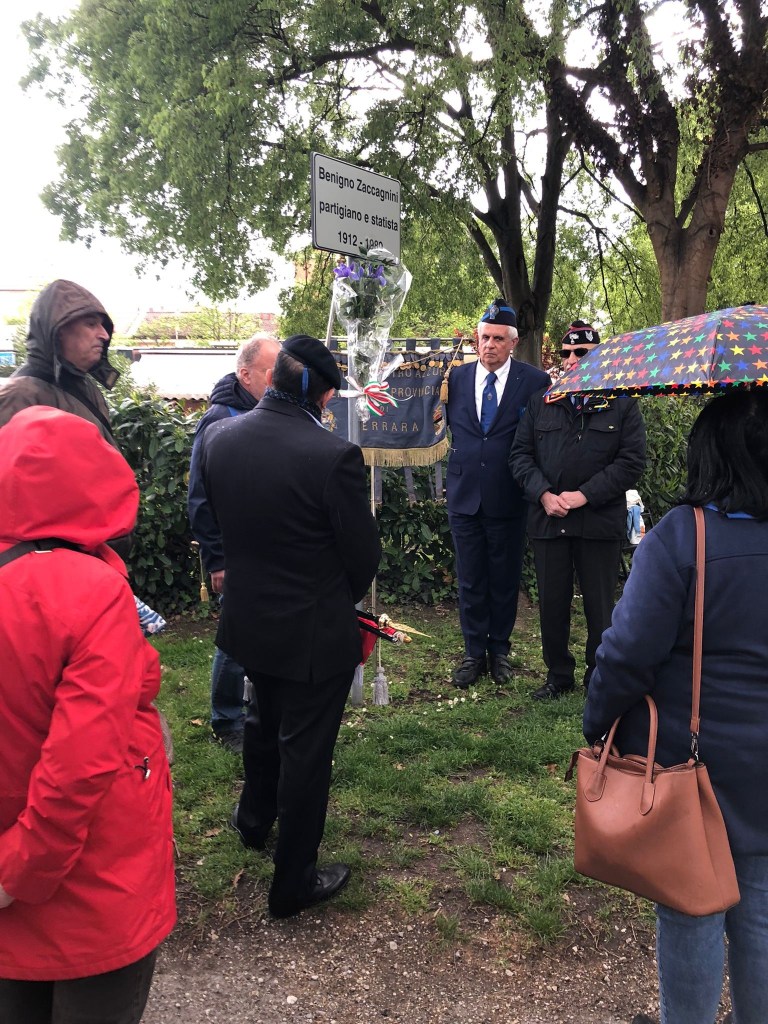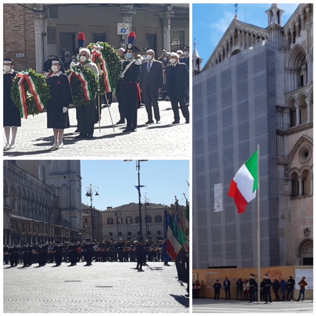 Alla manifestazione oltre alla nostra partecipazione erano presenti Anpi Croce Rossa Italiana e Associazioni d’Arma e Combattentistiche, Nastro Azzurro e Assoarma. Le istituzioni con i loro rappresentanti, il Prefetto e il Picchetto d’Onore della Aeronautica Militare – Comando Operazioni Aerospaziali (COA) Ferrara. Per la prima volta era presente una delegazione con il labaro/stendardo della Brigata Ebraica. Per l’occasione era presente il Ministro dell’Istruzione Prof. Patrizio Bianchi.