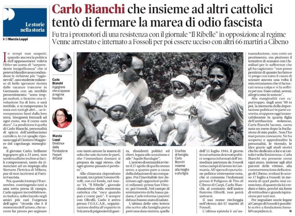A Carlo Bianchi è dedicata la puntata de ‘Le storia nella Storia’, la rubrica della Fondazione Fossoli sulla Gazzetta di Modena.