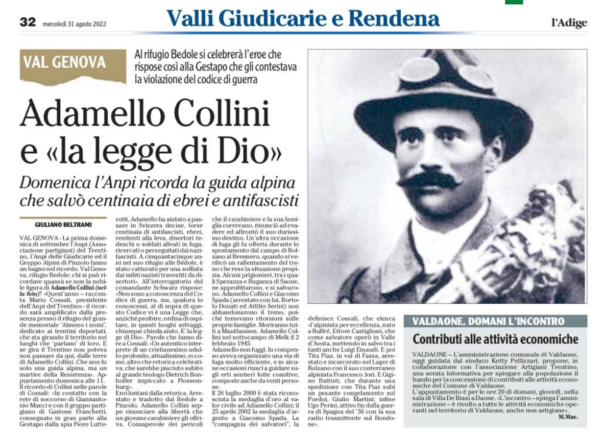 Pubblicato sull’Adige del 31.08.2022, riportiamo questo articolo.