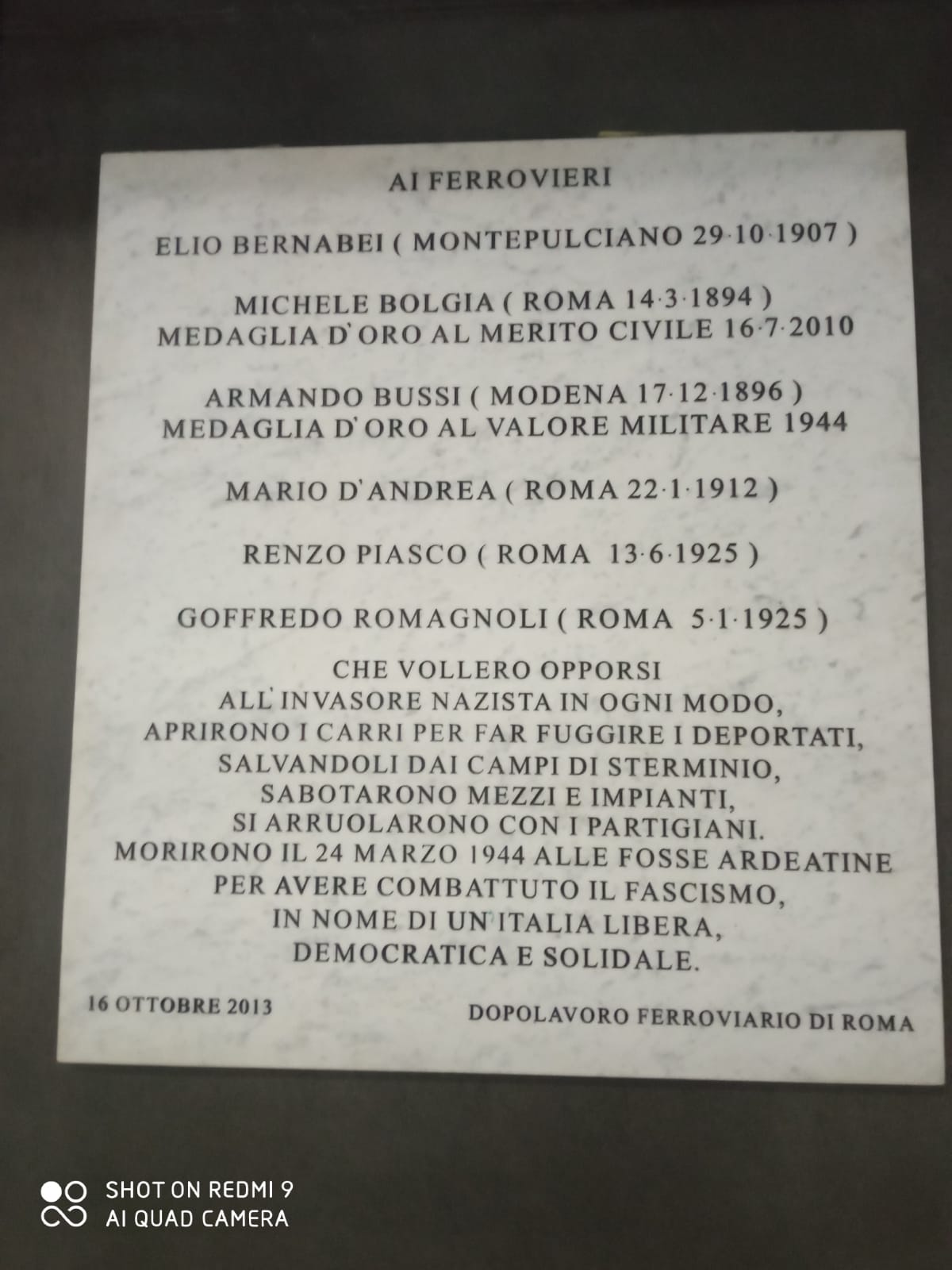 17 ottobre. Come ogni anno la Banda musicale delle FFSS esegue il concerto all'interno della stazione Tiburtina in prossimità del binario da dove partirono gli Ebrei rastrellati al ghetto il 16 Ottobre 1943. E' stata deposta una corona in memoria dei Ferrovieri vittime del Nazifascismo. Per l'Anpc era presente il Consigliere Nazionale Aladino Lombardi.