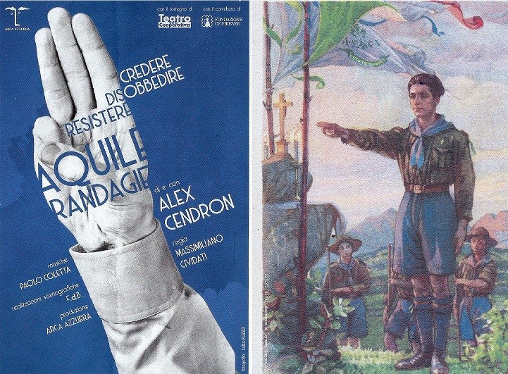 D. Come è nato lo spettacolo di una storia vera e sconosciuta? “Ho conosciuto questa storia attraverso un libro uscito in ambito scout sulle Aquile Randagie, mi affascinò moltissimo tanto che decisi di fare il secondo tempo di formazione – chi fa il capo scout deve fare due tappe formative – a Colico, località che sapevo essere collegata alla storia delle Aquile Randagie. In quella settimana formativa ho conosciuto la loro storia. Sono stato in val Codera, altro luogo importante per le Aquile Randagie. All’epoca ero ancora studente in accademia come attore. Una delle mie fascinazioni attoriali era il monologo Vajont di Paolini. Quando conobbi la storia delle Aquile Randagie pensai che quella storia potesse diventare il mio Vajont. Una storia da raccontare perché fa parte anche della mia storia scout”