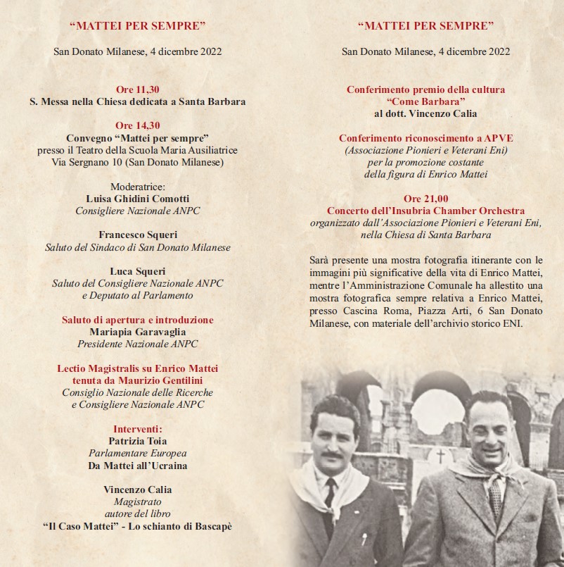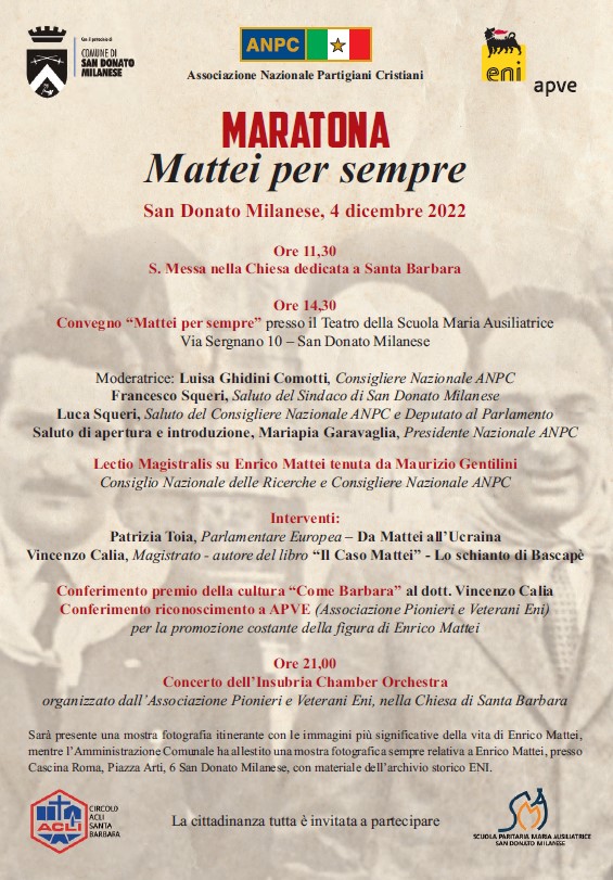 Il 4 dicembre 2022 appuntamento a San Donato Milanese per l’ultima tappa della nostra “Maratona Mattei”.