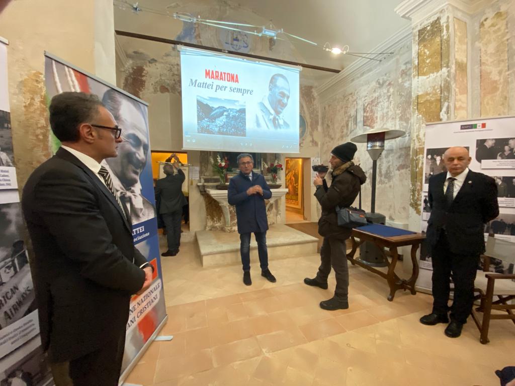 Nel pomeriggio di sabato 26 novembre seconda tappa MARATONA MATTEI PER SEMPRE esposizione fotografica e rassegna cinematografica presso la SALETTA DEI RICORDI sita nel complesso di S. Gregorio comune di Cantalice( Rieti) presenza numerosa di cittadini e autorità civili e militari. L’ANPC ha conferito un riconoscimento al Fondatore del museo dr. Antonio Tavani e al sindaco Silvia Boccini.