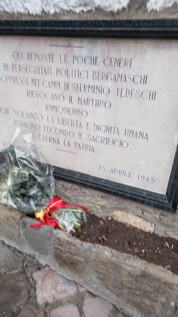 Davanti alla lapide posata in memoria degli ebrei bergamaschi deportati i discorsi delle autorità vertono tutti sulla necessità di vigilare affinché questa cerimonia non sia un rito ripetitivo ma sia la memoria viva del sacrificio di chi ha perso la vita a causa della follia di nazisti e fascisti e, purtroppo anche l’indifferenza e il tradimento di italiani. Davanti alla lapide che custodisce le povere ceneri dei perseguitati politici bergamaschi, il presidente del Comitato antifascista bergamasco, legge alcuni brani di un libro di V.Grossman; la commozione è tangibile.