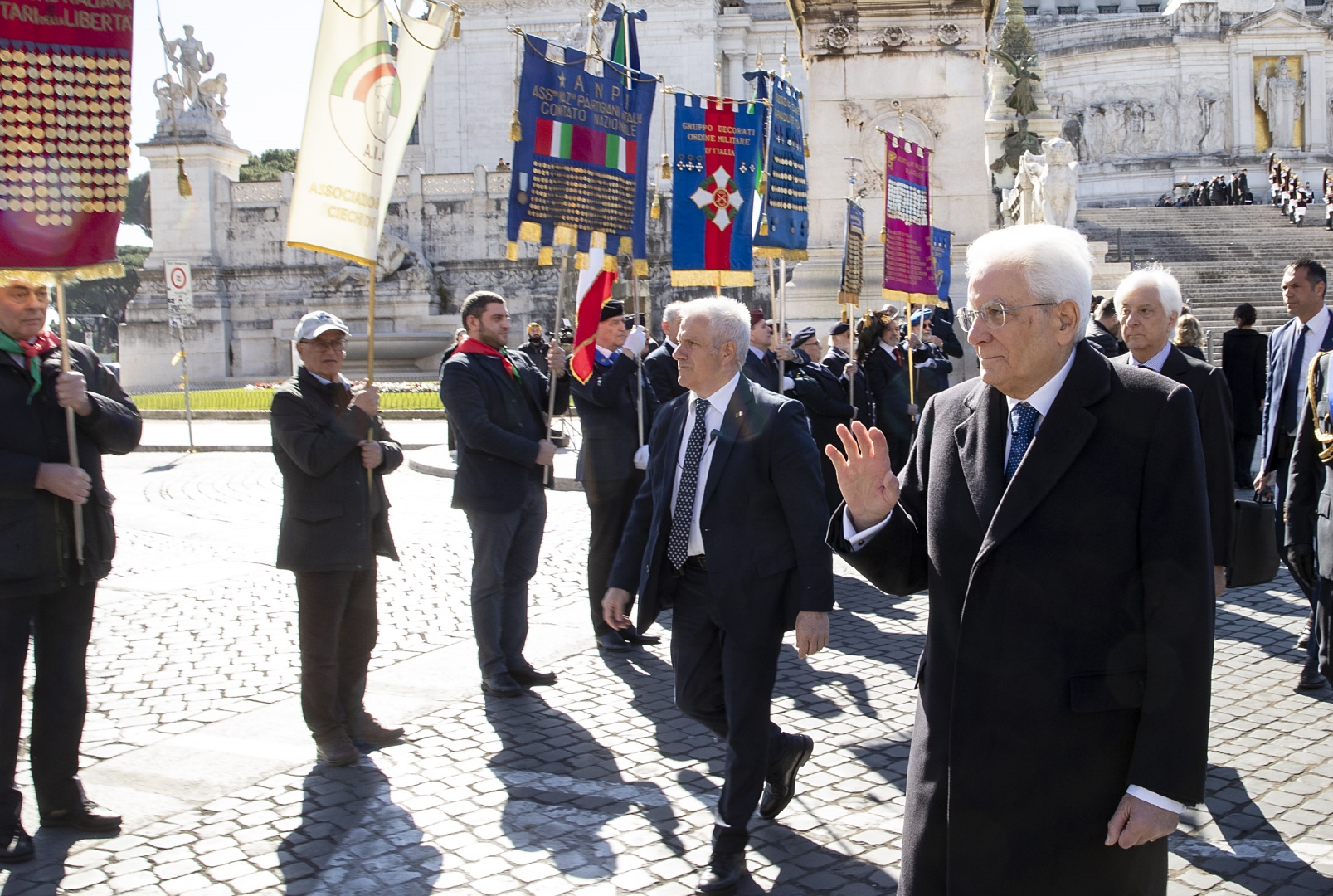 Il Presidente della Repubblica, Sergio Mattarella, in occasione del 162° anniversario della Giornata dell’Unità Nazionale, della Costituzione, dell’Inno e della Bandiera, ha deposto una corona d’alloro sulla tomba del Milite Ignoto. All’evento hanno partecipato i Presidenti del Senato, del Consiglio dei Ministri, della Corte Costituzionale e il Vice Presidente della Camera dei Deputati. Erano altrersì presenti Autorità civili e militari, Rappresentanti Interforze e delle Associazioni Combattentistiche e d’Arma. Per l’Anpc era presente il Consigliere Nazionale Aladino Lombardi.
