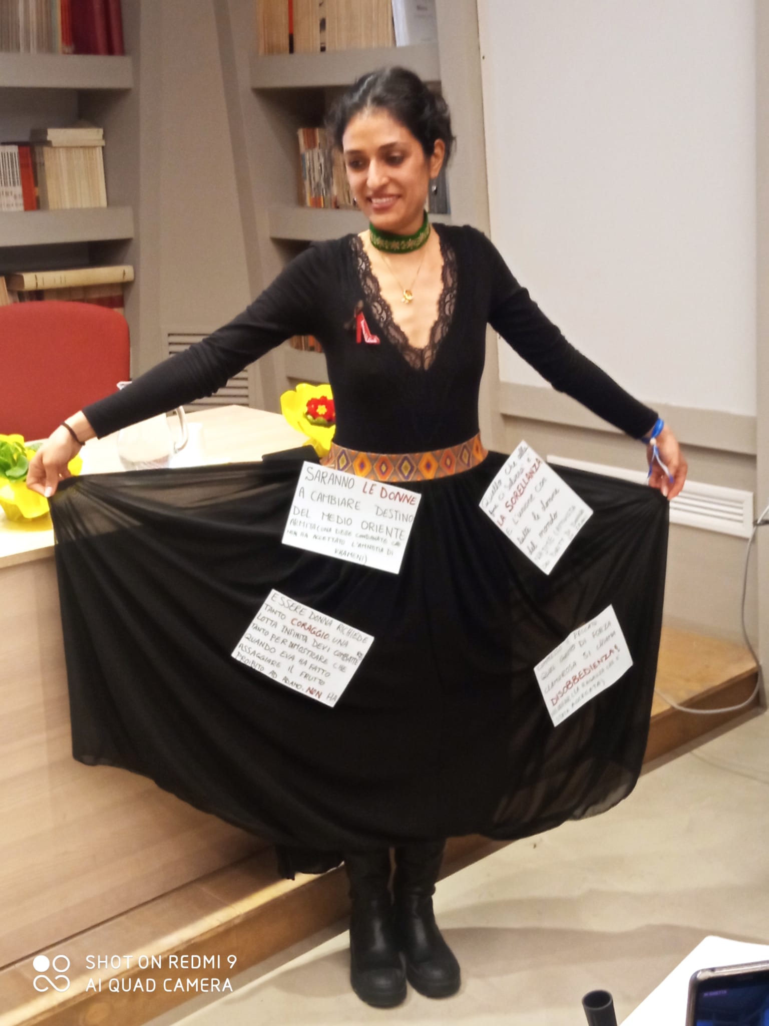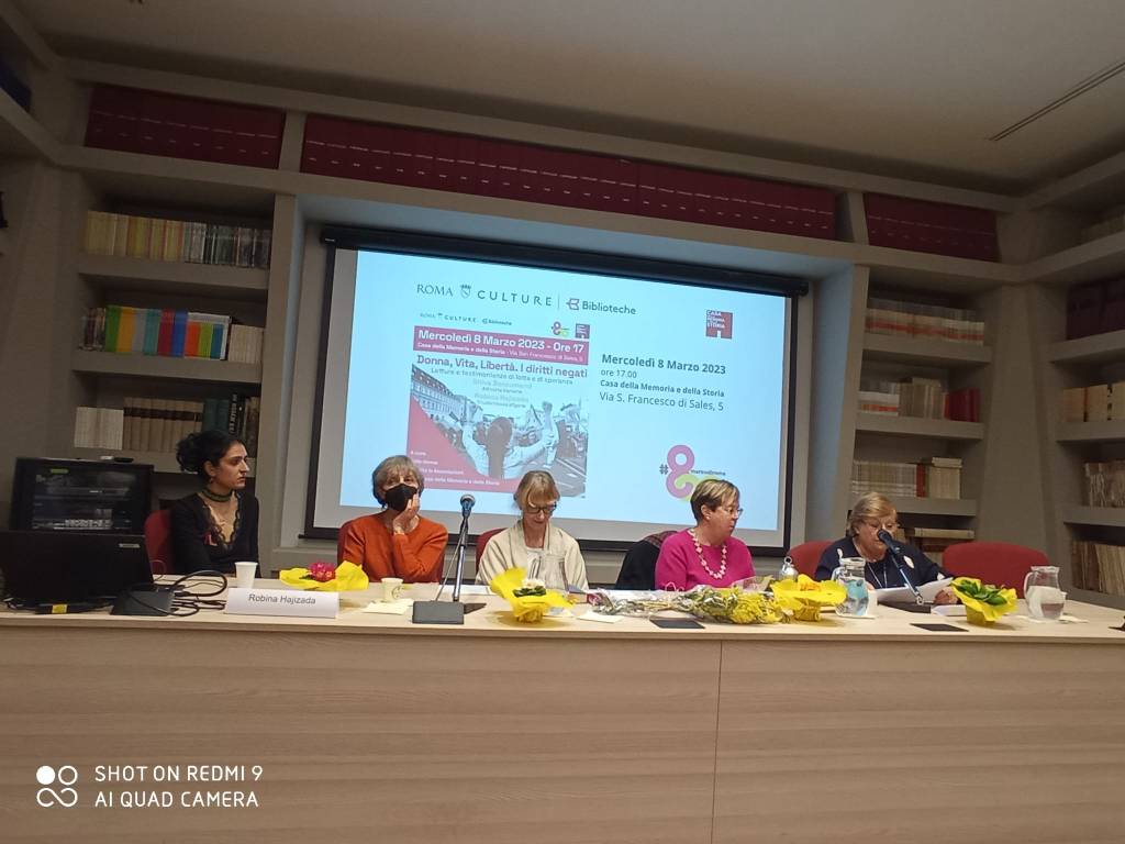 Annabella Gioia e Bianca Cimotta hanno illustrato in breve il contenuto dei due libri. Si è cercato di concentrare l’attenzione sulla situazione in cui versano le donne iraniane con la testimonianza di Parisa Nazari mediatrice interculturale attivista iraniana residente in Italia. Testimone della situazione afghana doveva essere Robina. Hajizada studentessa afghana, ma purtroppo è stata investita lungo la strada che percorreva per recarsi all’incontro. Ora è ricoverata ma non è in pericolo di vita.