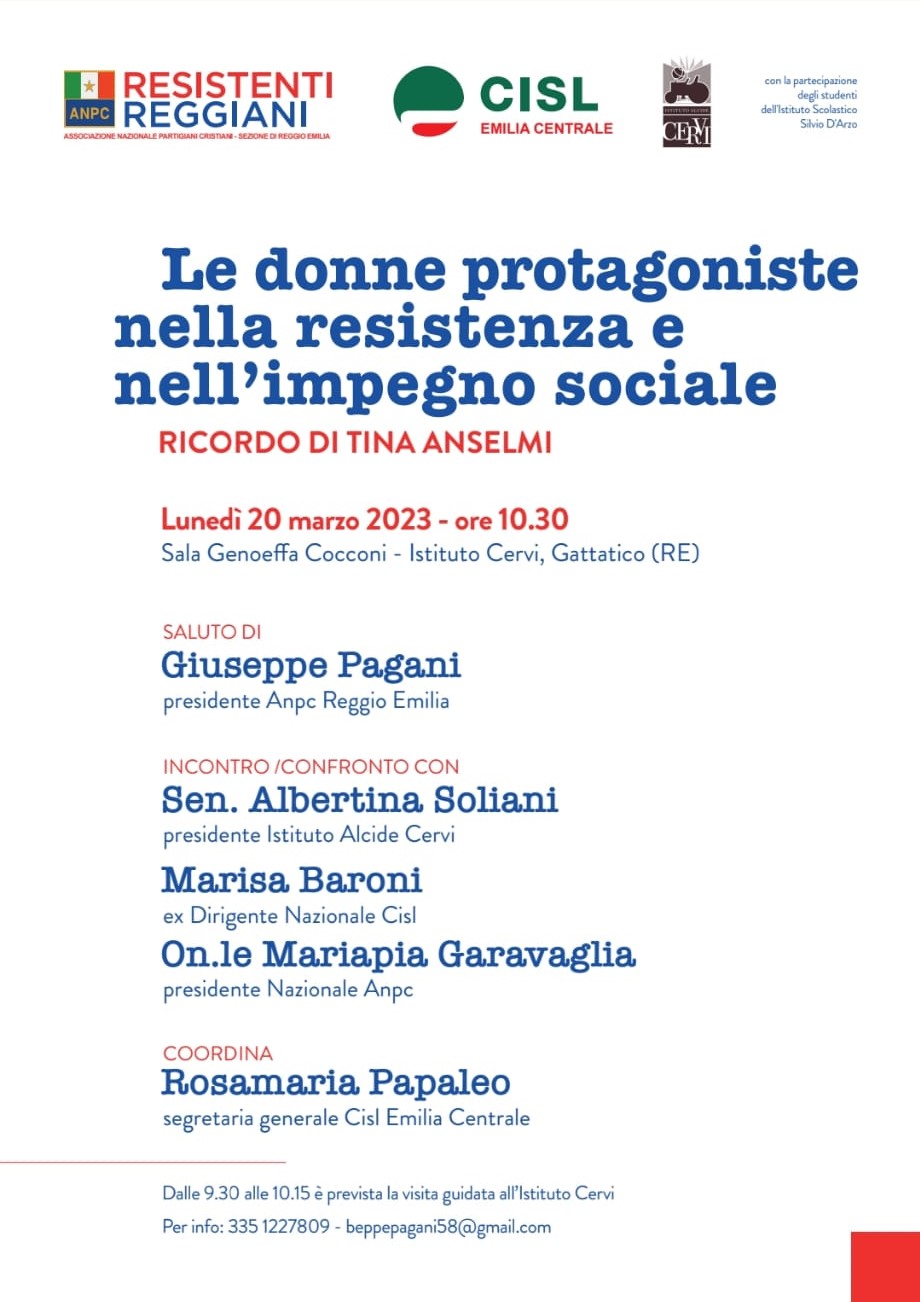 A Reggio Emilia il 20 marzo: ricordo di Tina Anselmi