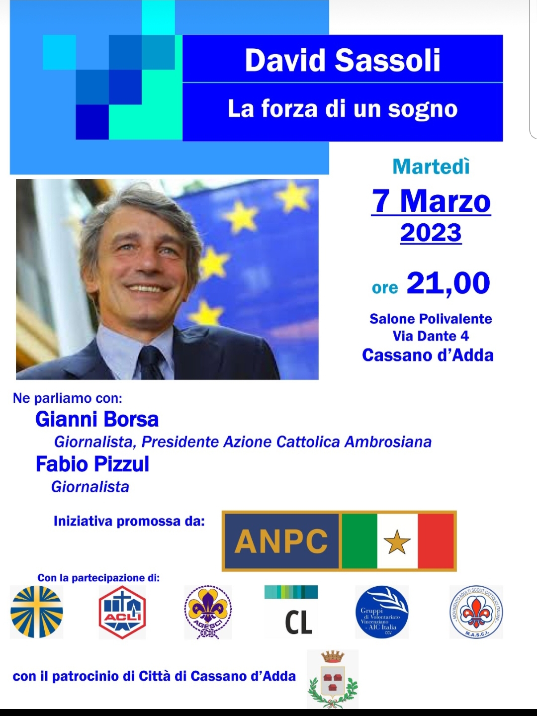 David Sassoli:la forza di un sogno. Il 7 Marzo a Cassano d’Adda