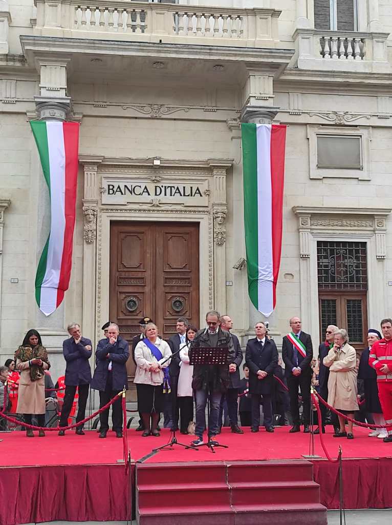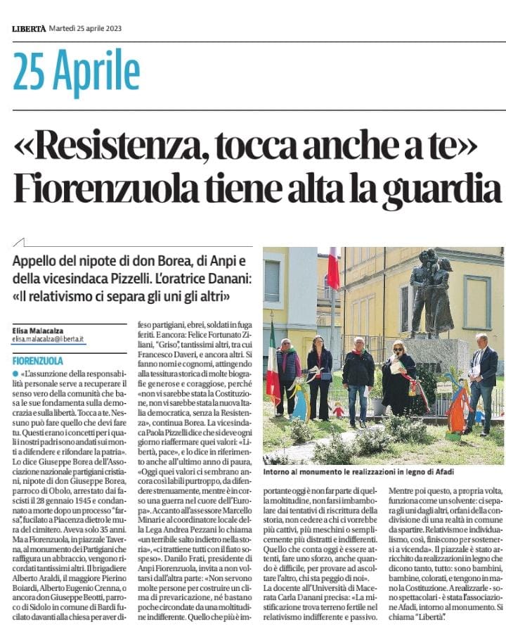 L’avvocato Nerino Benedetti, presidente del Comitato per le Onoranze, tiene il discorso commemorativo che conclude con queste parole: “L’esile figura del sacerdote di Cristo, che per amore portato alle anime a lui affidate ha incontrato la morte, e l’immagine del fiero soldato tedesco, che senza batter ciglio e a testa alta ha affrontato il mitra spianato contro di sé per un supremo dovere di coscienza e di umana fratellanza, sono oggi unite nel nostro ricordo commosso, nella nostra gratitudine, nel nostro impegno solenne di essere meritevoli del loro sacrificio e del loro esempio… Vestivano la diversa divisa di due eserciti tanto fra loro dissimili, ma i loro cuori battevano i palpiti di una medesima fede. A loro sia gloria eterna!“.