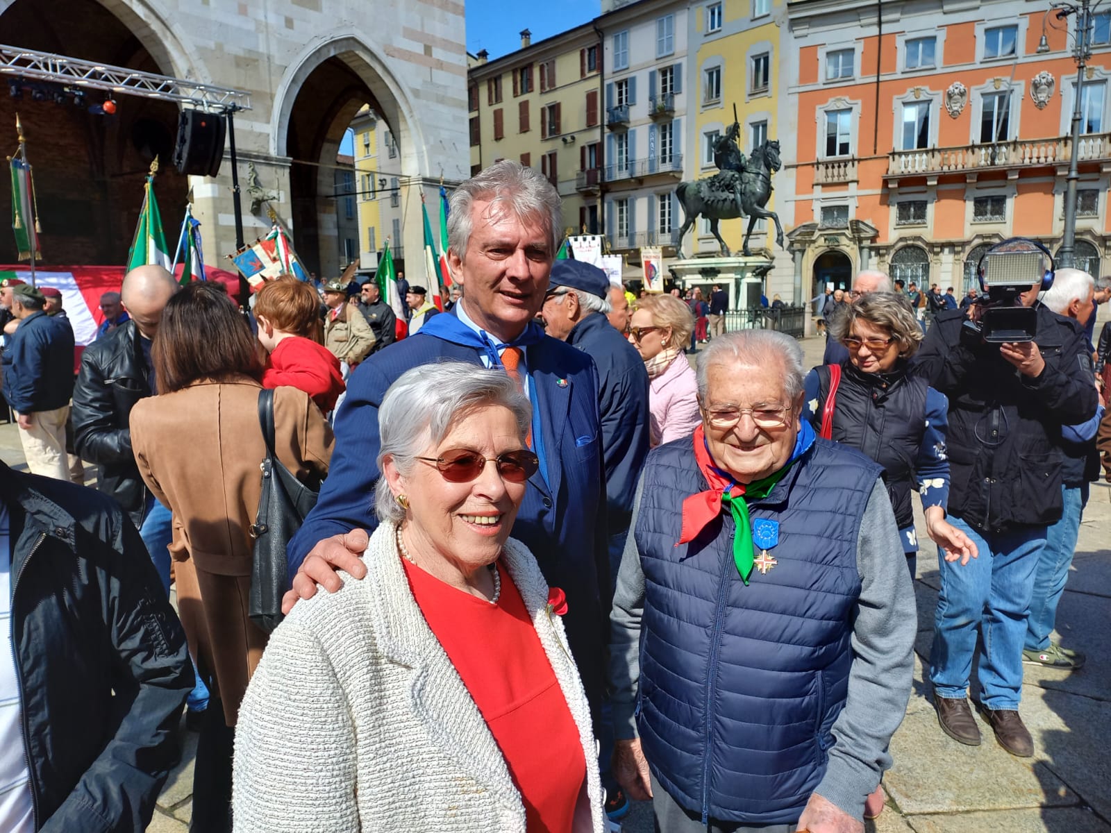 La foto ritrae la nostra presidente on. Maria Pia Garavaglia con Pino Fumi e Mario Spezia in occasione della celebrazione del 25 aprile 2023 a Piacenza.