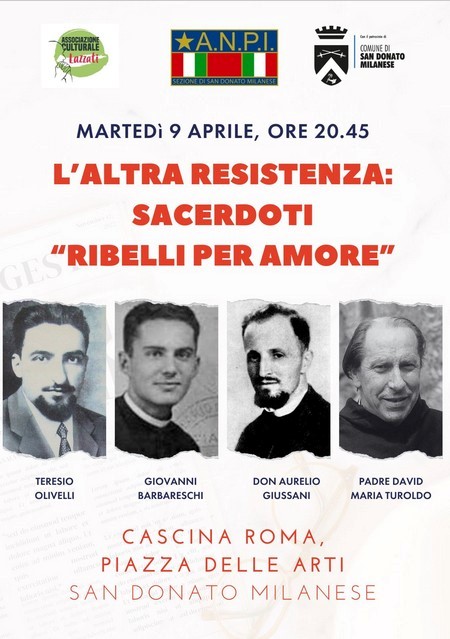 San Donato Milanese, 9 aprile 2024. L’altra Resistenza: Sacerdoti “Ribelli per amore”.Padre David Maria Turoldo, Giuseppe Lazzati, Don Giovanni Barbareschi, Don Aurelio Giussani, Teresio Olivelli