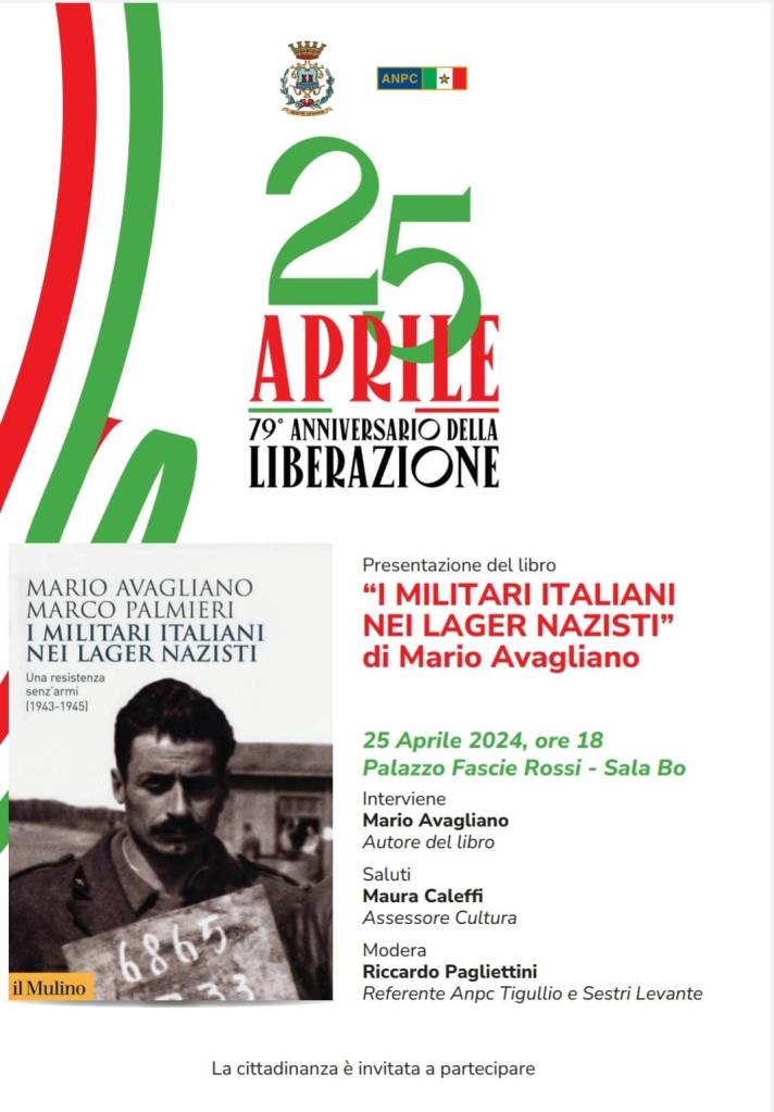 Il 25 aprile 2024, nel 79° anniversario della Liberazione, alle ore 18,00 presso Palazzo Fascie Rossi nella Sala Bo la presentazione del libro: “I Militari Italiani nei lager nazisti” di Mario Avigliano e Marco Palmieri.