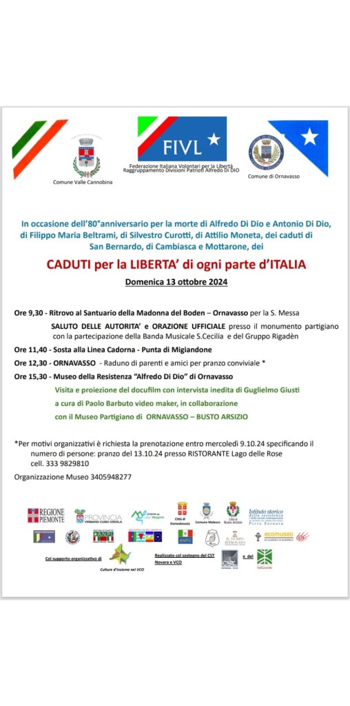 In occasione dell’Ottantesimo Anniversario Eccidio al Cimitero e al Sasso di Finero sabato 12 ottobre 2024.