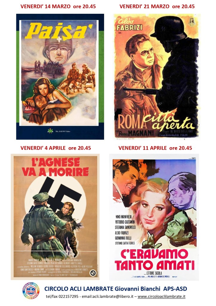 Per l’80° della Liberazione, con ANPPIA milanese, presso il Circolo Acli Giovanni Bianchi di Lambrate, partecipiamo a questa rassegna cinematografica. Pubblichiamo la locandina: