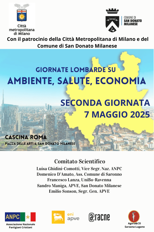 La seconda Giornata Lombarda di studio su Salute, Ambiente, Economia avrà luogo, con il patrocinio della Città metropolitana di Milano e del Comune di San Donato Milanese, il giorno 7 maggio mercoledi dalle ore 9:30, nella Sala Concerti ” L.Previato” di Cascina Roma piazza delle Arti 6, San Donato Milanese.