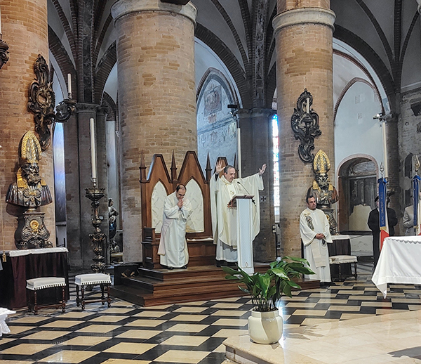 La liturgia, svoltasi subito dopo il rito civile in piazza Cavalli, presieduta da don Basini, vicario generale della diocesi di Piacenza-Bobbio, è stata introdotta dai saluti di benvenuto da parte del parroco della basilica, don Ezio Molinari, davanti alle numerose autorità civili e militari, presenti in chiesa