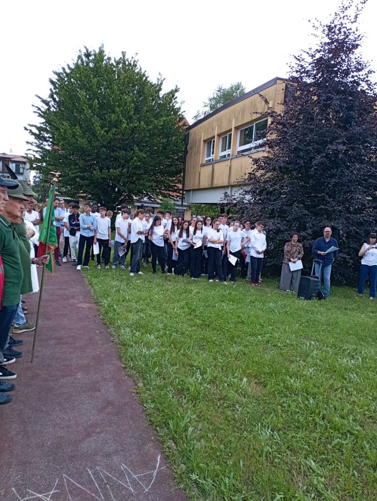 6 giugno 2025 – L’ANPC di Bergamo ha partecipato alla cerimonia di “intitolazione del GIARDINO DEI GIUSTI” nel giardino della scuola media di Torre Boldone (BG) a Don Tranquillo Dalla Vecchia grande e importante figura nella Resistenza. Si prodigo per aiutare i perseguitati e gli ebrei offrendo loro assistenza, rifugio, e facilitando la loro fuga verso la Svizzera. Ammirevole il lavoro dei ragazzi che coordinati dalla dirigenza della scuola si sono impegnati in un lavoro di ricerca storica e di realizzazione del “loro GIARDINO DEI GIUSTI ” sul vecchio ulivo presente a scuola. Sembravano veramente consapevoli del significato del loro lavoro. L’ANPC è stata riconoscente alla scuola per il graditissimo invito alla condivisione di memorie resistenziali.