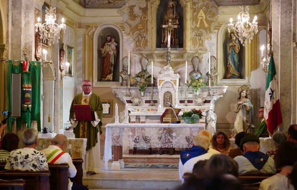 Alle ore 15 la messa presieduta dal vescovo mons. Adriano Cevolotto accompagnato da don Mario Tambini, ha visto la partecipazione di numerosi fedeli e la presenza del Comune di Gragnano Trebbiense rappresentato dal sindaco Patrizia Calza, dell’assessore del Comune di Bardi, Roberto Bertorelli e del consigliere del Comune di Piacenza, Salvatore Scafuto oltre alla delegazione dell’Associazione Nazionale Partigiani Cristiani di Piacenza che ha raggiunto il piccolo borgo con una rappresentanza guidata dal presidente Mario Spezia e composta dai consiglieri: Enzo Caprioli, Mario Agnelli, Giuseppe Ardizzi e Fabio Salotti.