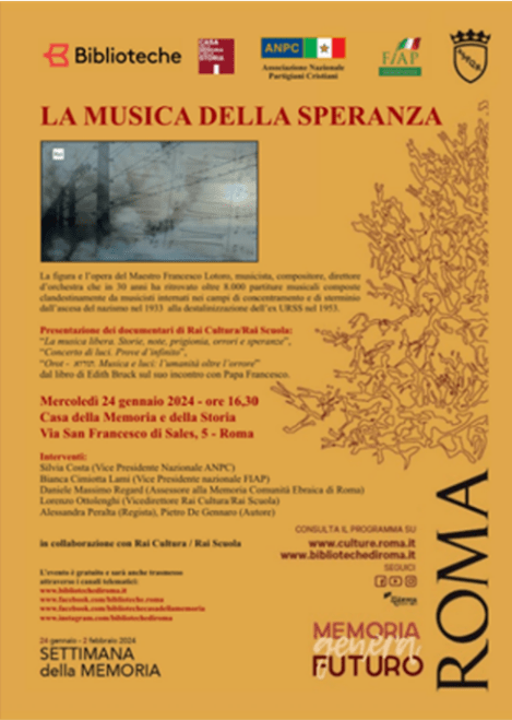 L’ANPC ha sempre avuto una grande attenzione ai temi della memoria e del ricordo della Shoah, e negli anni scorsi ha promosso a Roma vari incontri dedicati al racconto della Shoah alle giovani generazioni attraverso le produzioni della Rai per bambini e ragazzi, come la fiction prodotta da Rai Kids “ Come foglie al vento” tratta dal libro di Riccardo Calimani e la serie di documentari prodotti da Rai Scuola “La musica della speranza” sulla figura e l’opera del Maestro Francesco Lotoro, fondatore e presidente della Fondazione Istituto internazionale di Letteratura Musicale Concentrazionaria.