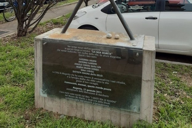 Dopo “La cartolina di Elena” e “L’anello ritrovato“, ritornano Cecilia (Mariandrea Cesari) e David (Liam Nicolosi), i giovani detective delle storie dimenticate della Shoah, con un nuovo speciale TV ispirato alla storia vera di Dina Cerioli e dei cinque dipendenti della fabbrica di Magenta Molho &C. che aiutarono la famiglia Molho a nascondersi, salvandola dalla persecuzione nazista, e che nel 1998 sono stati insigniti del titolo di “Giusti fra le Nazioni” dallo Yad Vashem.