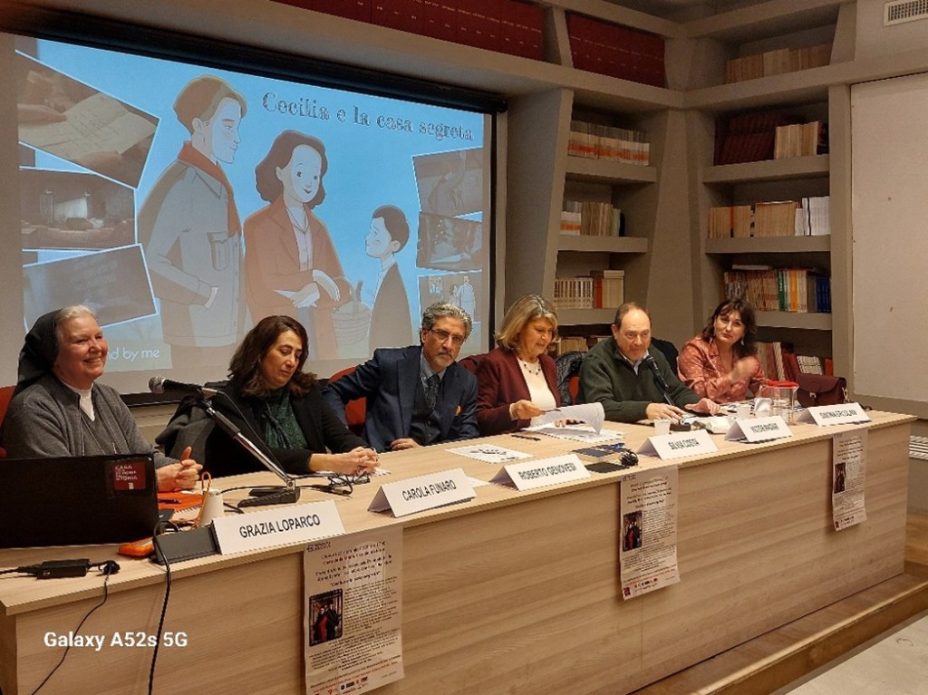 L’incontro è stato dedicato a quanti, uomini e donne, ragazzi e ragazze, religiosi e religiose, con coraggio, con spirito di abnegazione e a rischio della vita, si prodigarono per ospitare, proteggere e salvare gli ebrei dalla persecuzione nazifascista. Il nostro compito è preservare la memoria come ponte tra passato e futuro, e trasmettere la consapevolezza di eventi tragici come la Shoah è fondamentale per educare le nuove generazioni ai valori della tolleranza, della solidarietà e del rispetto. Come è fondamentale utilizzare linguaggi e strumenti giusti adatti alla loro età per avvicinarli gradualmente ai concetti di giustizia, empatia e memoria. Per questo è importante continuare a sviluppare la ricerca storica per far emergere la voce dei testimoni, spesso non ancora conosciuti.