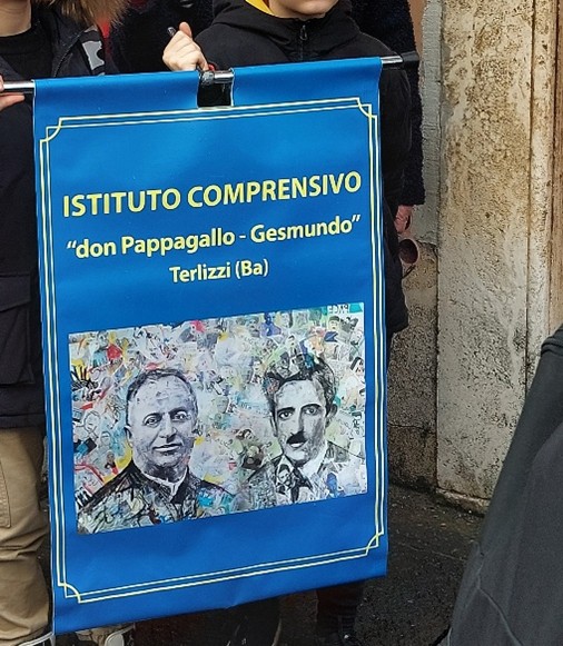 L’iniziativa promossa dall’ANPI provinciale di Roma, ha visto la partecipazione della sezione di Roma dell’ANPC, di Alessandra Sermoneta, vicepresidente Municipio Roma I Centro, di alunni, docenti e genitori dell’Istituto Comprensivo “Don Pietro Pappagallo-Giacchino Gesmundo” di Terlizzi e di rappresentanti del Comune di Terlizzi.