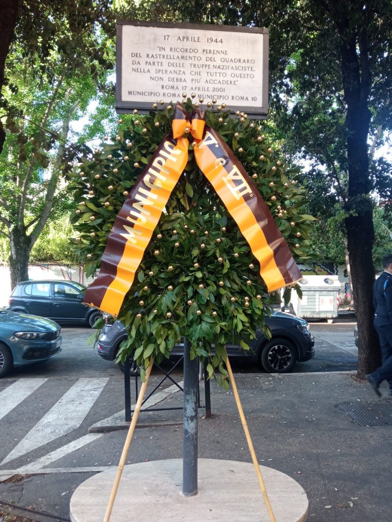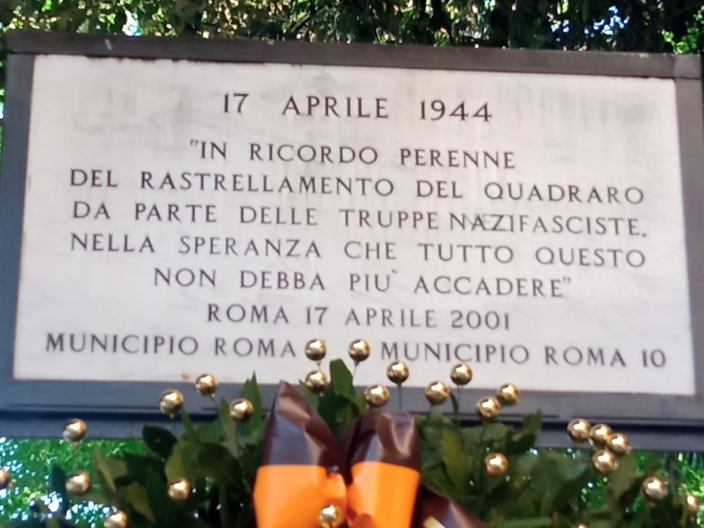 Alle presenza di Autorità civili e rappresentanti delle Associazioni Combattentistiche e Partigiane, Roma Capitale ha organizzato le seguenti cerimonie: alle ore 9.00 deposizione di una corona di alloro presso la targa posta in Via dei Quintili, 1; alle ore 9.45 circa deposizione di una corona di alloro presso il Monumento alle Vittime del Rastrellamento del Quadraro eretto all’interno del Parco 17 aprile 1944, con ingresso da Via Asconio Pediano.