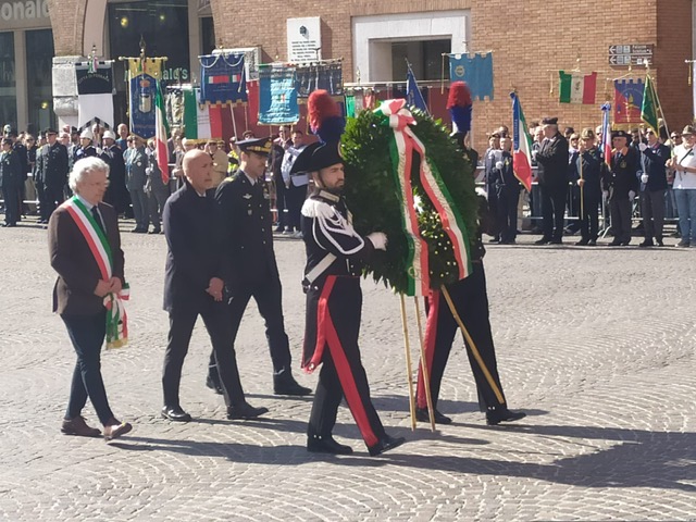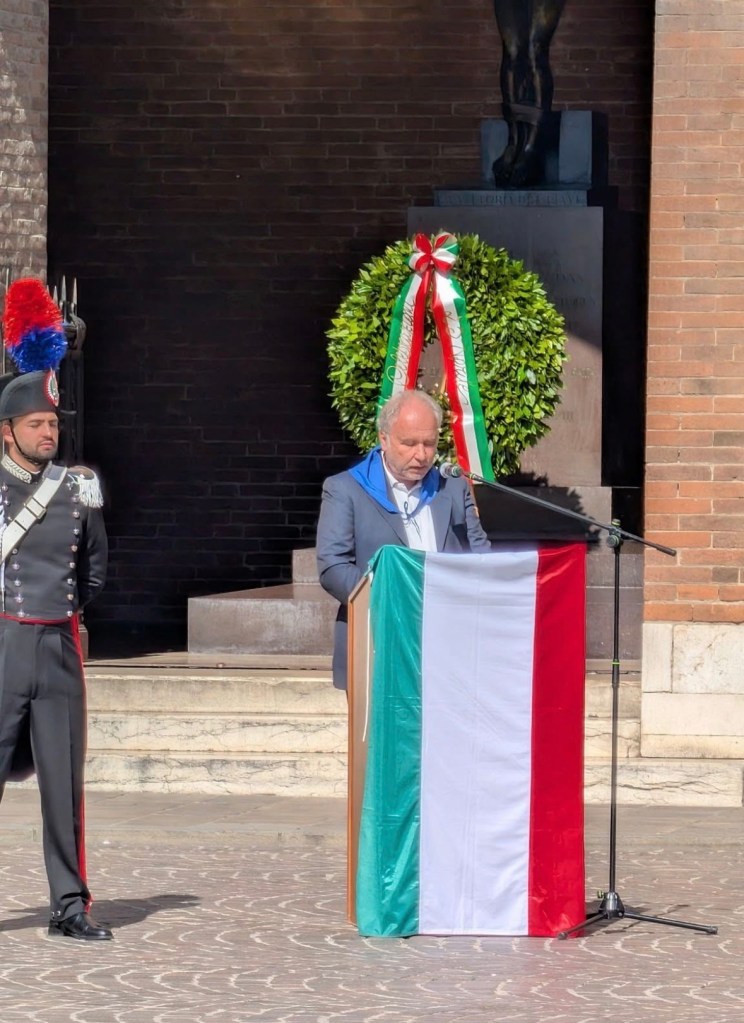 A seguire la deposizione di corone al sacrario dei caduti per la libertà alla Torre della Vittoria da parte delle autorità civili e politiche, delle associazioni partigiane, combattentistiche e d’arma. La giornata del 25 aprile deve essere una giornata di festa, una giornata di riconciliazione, una giornata che mette in condivisione i valori della patria, i valori della resistenza contro il nazifascismo” ha affermato successivamente Francesco Bertelli (ANPC Ferrara) anche nome delle associazioni combattentistiche e d’arma. “Questa festa rappresenta per i giovani un momento importante e un’occasione per rendere Ferrara ancora più bella. Oggi la Repubblica celebra un sentimento di libertà che costituisce il pilastro della nostra identità” ha continuato Bertelli, ricordando come – dopo gli anni della dittatura – l’Italia abbia trovato il riscatto e l’unità con le forze democratiche europee che si contrapposero al nazifascismo, contribuendo alla costruzione di una “società basata sulla democrazia, che essa stessa si impegna ancora oggi a difendere e salvaguardare”.