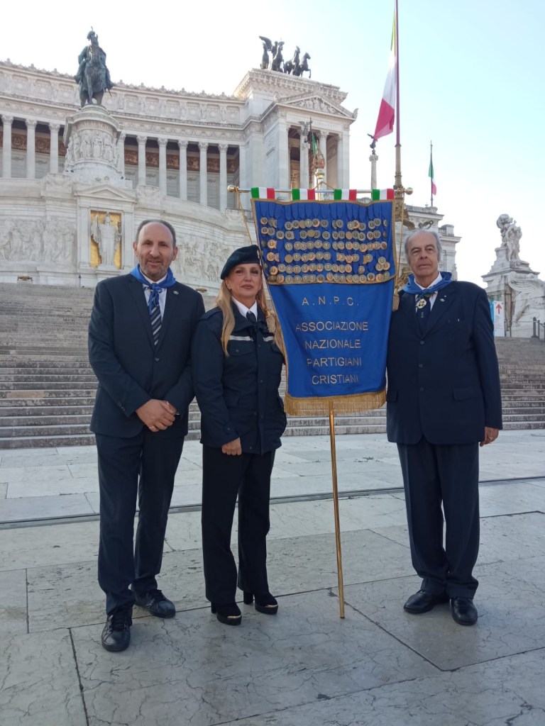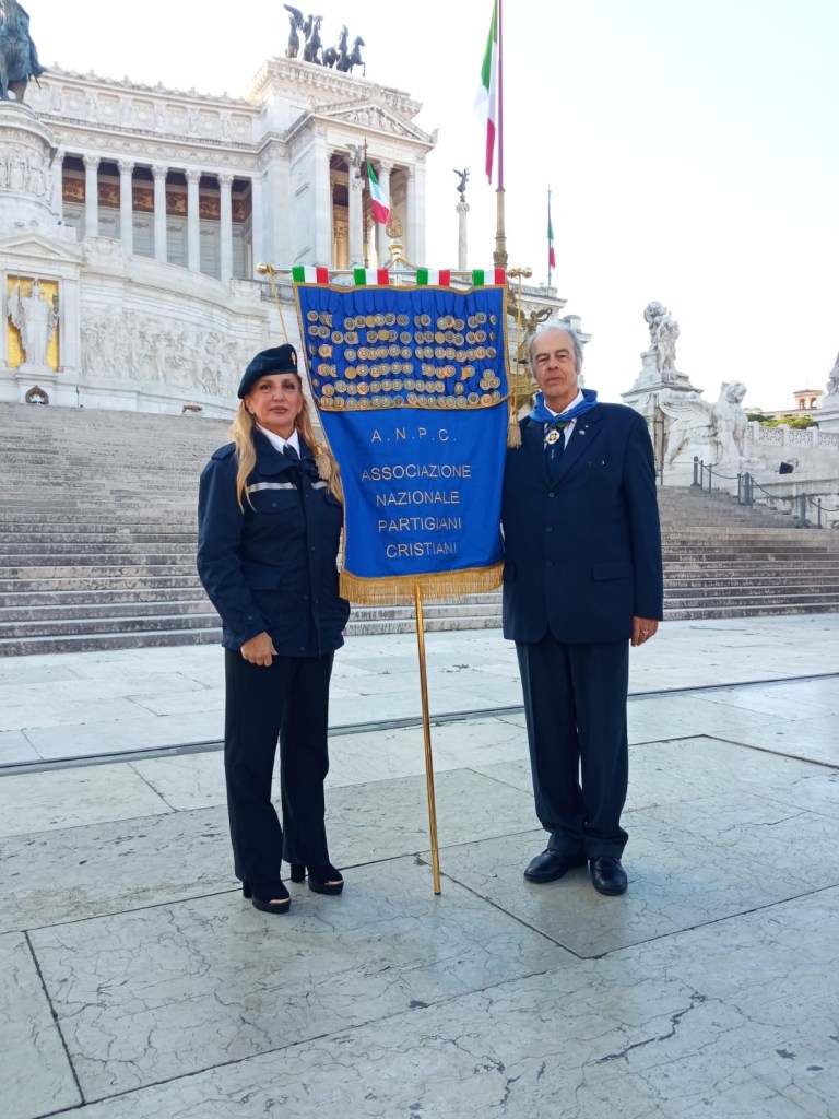 Presenti per l’Anpc il Consigliere Nazionale Aladino Lombardi, il Socio Giuseppe Di Fede e l’Alfiere Lucia Scagnoli con il medagliere dell’Associazione.