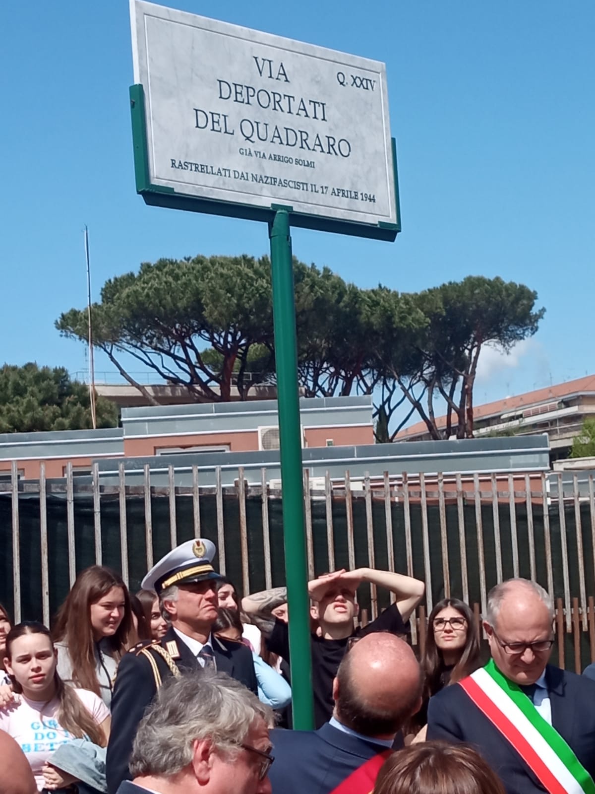 “C’era una battaglia tra chi voleva che vincesse Hitler e chi invece voleva un futuro di libertà, democrazia e giustizia. Questa battaglia ha attraversato la città e ha avuto momenti tragici, tra cui il rastrellamento del Ghetto, l’eccidio delle Fosse Ardeatine e, appunto, il rastrellamento del Quadraro. Da questa storia- ha ricordato Gualtieri – è nato il riscatto, l’idea di non limitarsi a contrastare, ma di essere diversi da loro. I cittadini di questo quartiere hanno messo a rischio la loro vita per regalarci un futuro migliore e noi lo dobbiamo ricordare e raccontare. Mai più nazismo, mai più fascismo, mai più discriminazione. Difendiamo la nostra Costituzione nata dalla lotta al nazifascismo. Viva i cittadini coraggiosi del Quadraro” ha dichiarato il sindaco, raccontando agli studenti che qui “C’erano persone, vostri nonni e bisnonni, coraggiosissime”. Duemila di loro vennero rastrellati. Alcuni, anche grazie a Don Gioacchino Rey, sono riusciti a scappare, ma almeno 683, stando all’elenco all’epoca compilato dal parroco, sono stati deportati nei campi di lavoro. La metà non ha fatto ritorno.