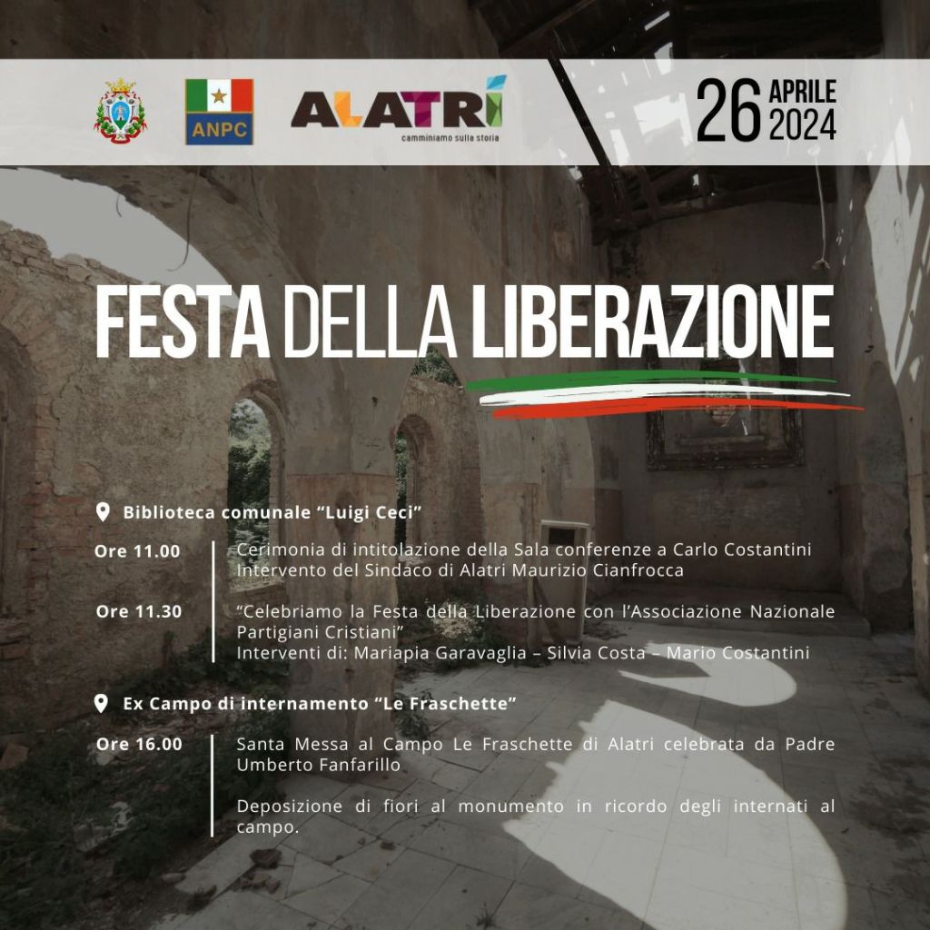 ALATRI – 26 APRILE 2024 L’ A.N.P.C. per la FESTA DELLA LIBERAZIONE
