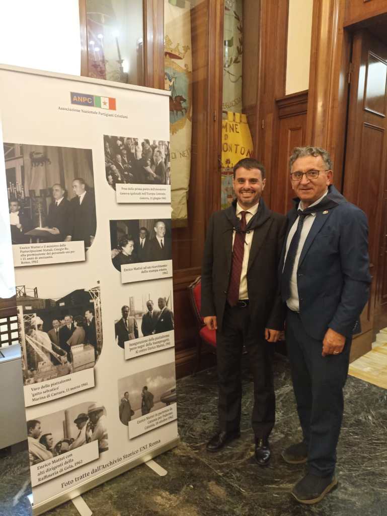 Si è tenuto a Palazzo Valentini il primo dei tre incontri della “Maratona Mattei per sempre”, in occasione del sessantesimo anniversario della morte di Enrico Mattei. Seguiranno gli appuntamenti a Rieti il 1° dicembre e a San Donato Milanese il 4 dicembre. Al tavolo dei relatori: la Presidente Nazionale ANPC Mariapia Garavaglia, il Consigliere di Città Metropolitana Roma Capitale Mariano Angelucci (al quale vanno i ringraziamenti per l’ospitalità nella sede prestigiosa di Palazzo Valentini), Mario Rencricca, Presidente Nazionale Associazione Pionieri Veterani ENI e Aldo Ferrara, autore del libro “Enrico Mattei il Visionario”, che ha tenuto la lectio magistralis.